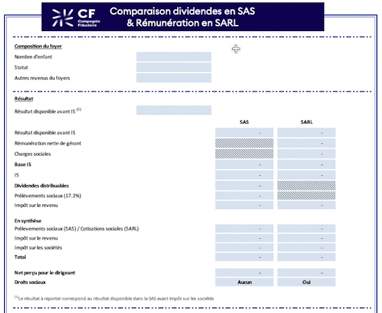 Grâce à notre simulateur comparez le net perçu entre une rémunération exclusivement en dividendes en SAS et une rémunération de gérance en SARL ! Coût des cotisations sociales, imposition, rémunération… Faites le choix le plus adapté à votre situation*!